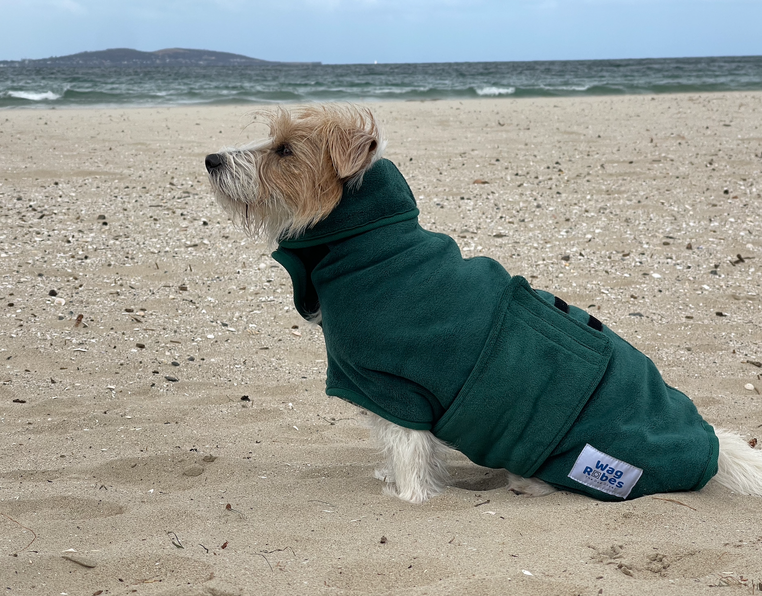 Designed to easily be put on after walks, the beach or the bath before hanging to dry or machine washed